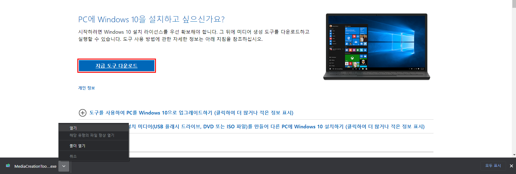 인터넷 브라우저에 구글을 띄웁니다. 윈도우 10 usb 만들기 입력하시면 스샷처럼 나옵니다.