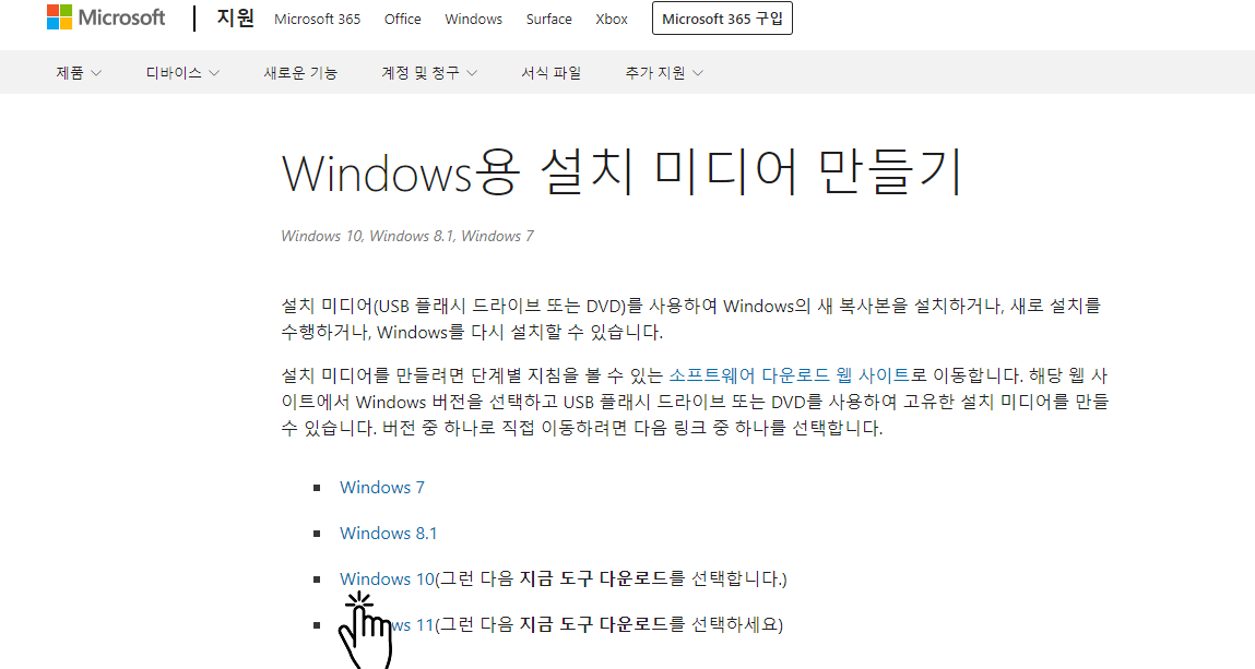 Windows용 설치 미디어 만들기 - Microsoft 지원
