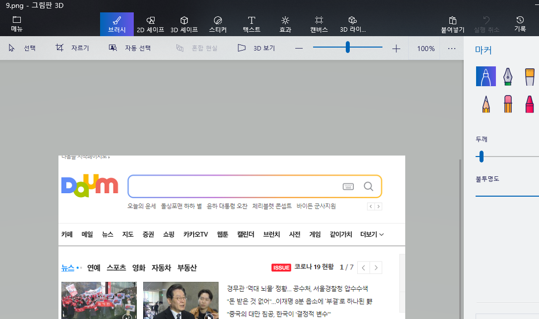 같은 daum홈화면을 사진앱, 그림판, 그림판3D로 각각 열리게 해 봤습니다.