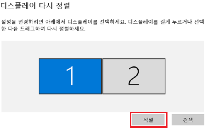 1번 모니터 2번 모니터를 알려주는 식별 숫자가 뜹니다.